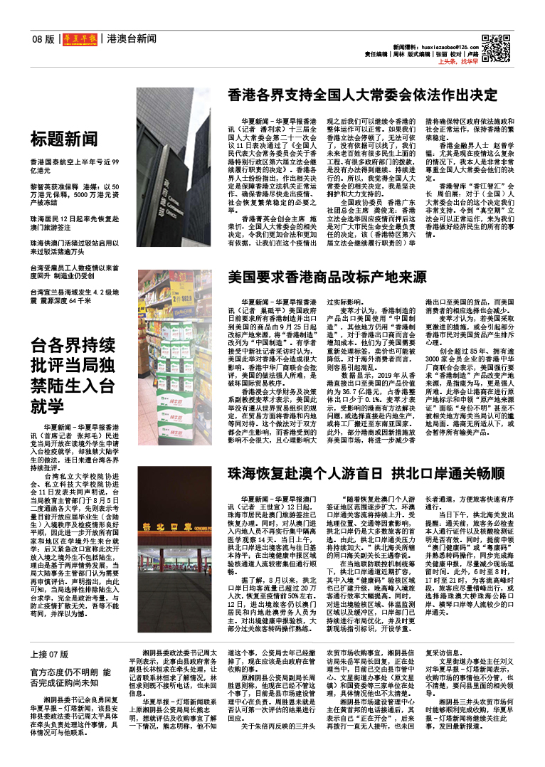 华夏早报数字报 每周五出版 - 总第121期 2020年8月14日出版