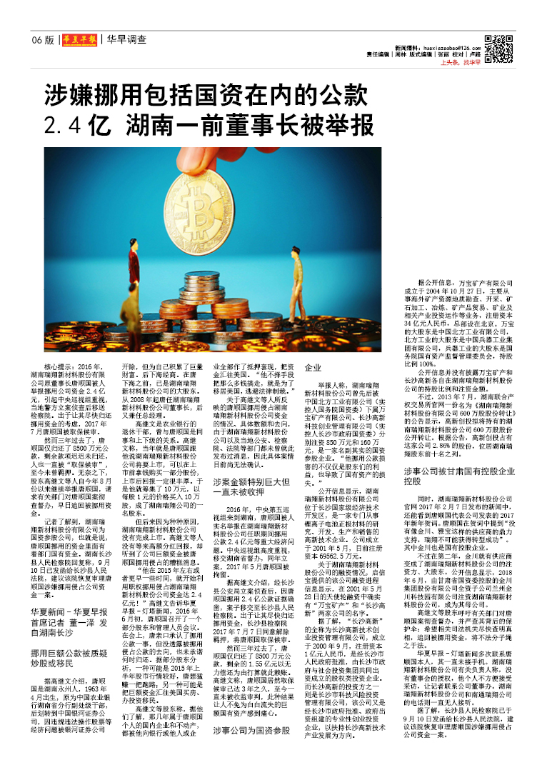 涉嫌挪用包括国资在内的公款2.4亿 湖南一前董事长被举报