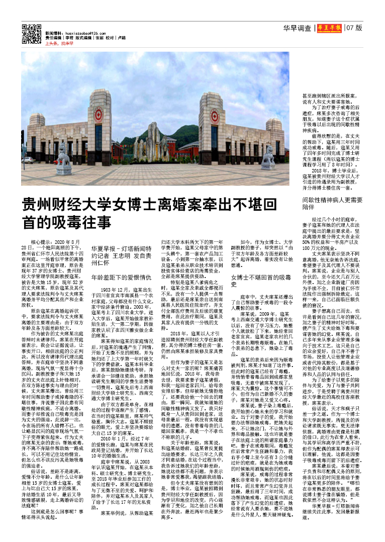 贵州财经大学女博士离婚案牵出不堪回首的吸毒往事