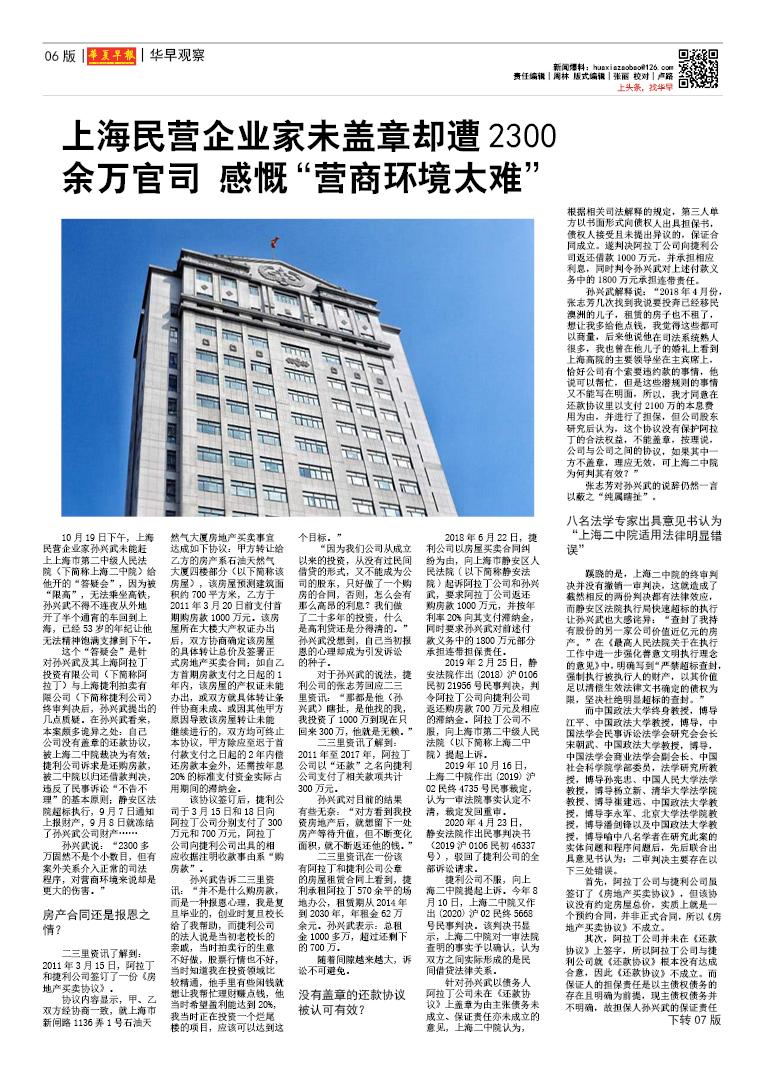 上海民营企业家未盖章却遭2300余万官司 感慨“营商环境太难”