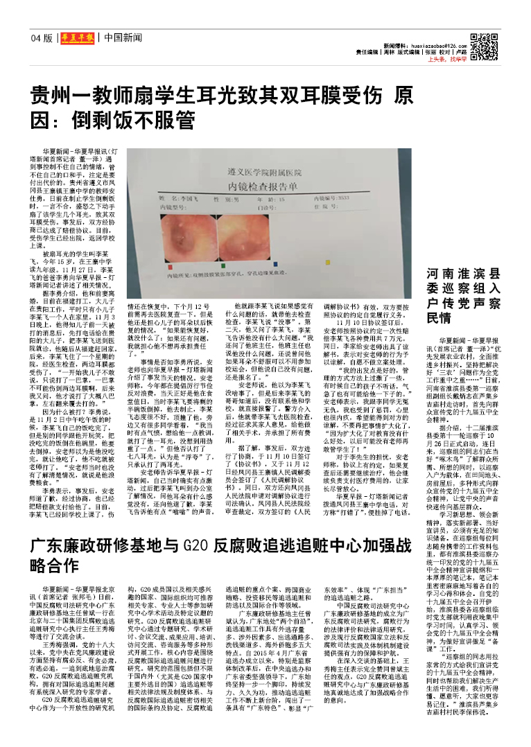 贵州一教师扇学生耳光致其双耳膜受伤 原因:倒剩饭不服管