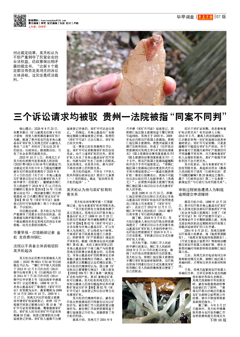 三个诉讼请求均被驳 贵州一法院被指“同案不同判”