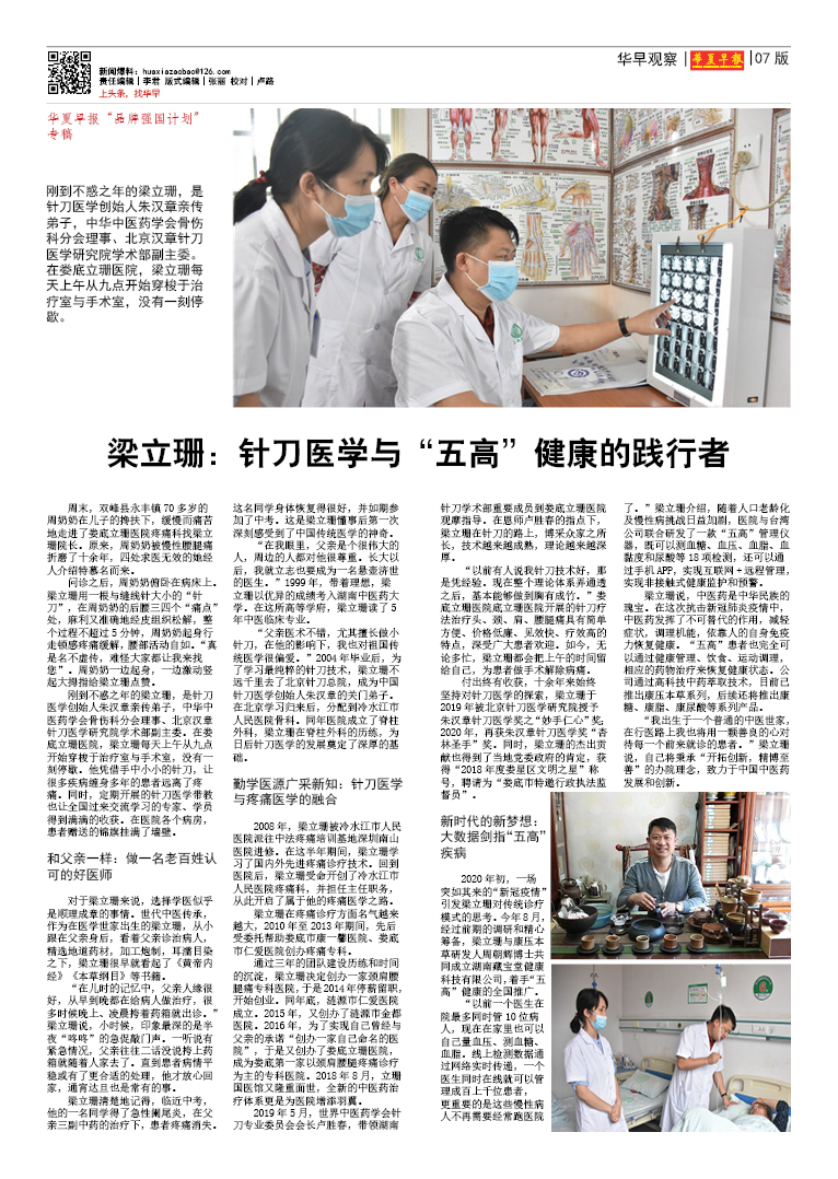 华夏早报“品牌强国计划”专稿|梁立珊:针刀医学与“五高”健康的践行者