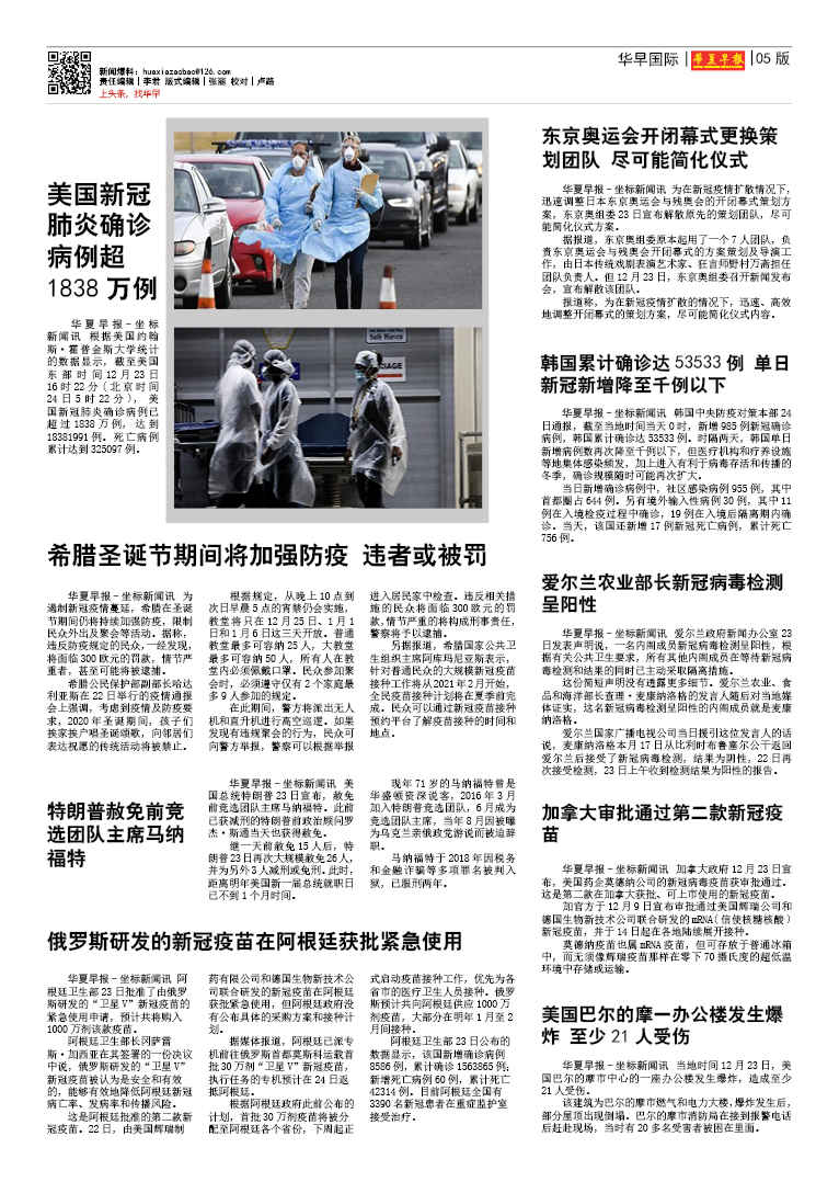 华夏早报数字报 每周五出版 - 总第140期 2020年12月25日出版