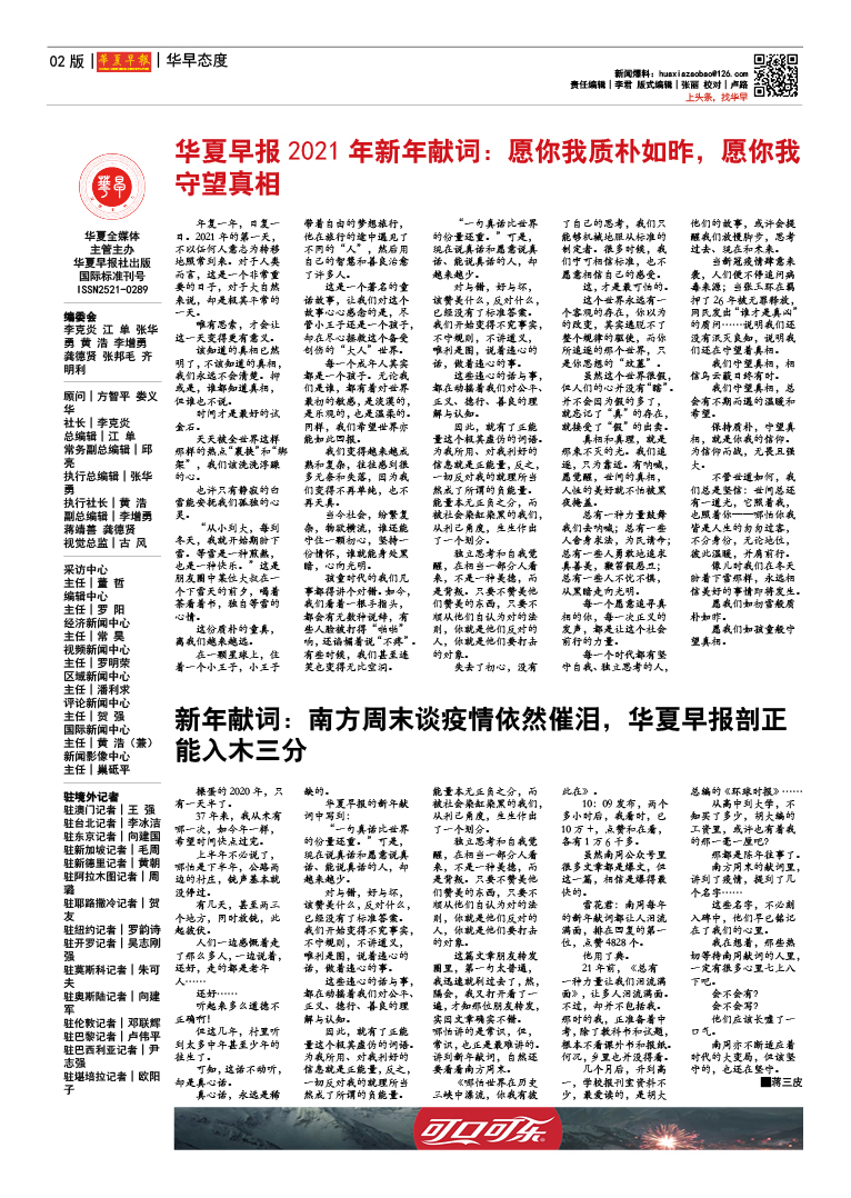 华夏早报2021年新年献词:愿你我质朴如昨,愿你我守望真相