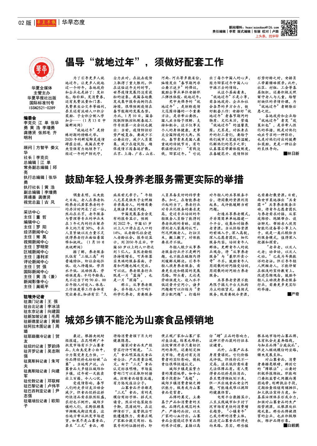 华夏早报数字报 每周五出版 - 总第143期 2021年1月15日出版