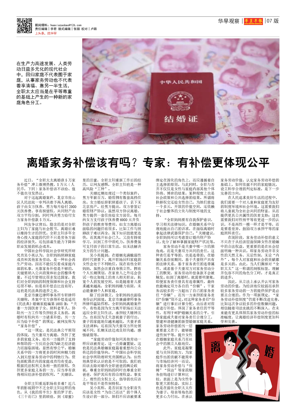 离婚家务补偿该有吗?专家:有补偿更体现公平