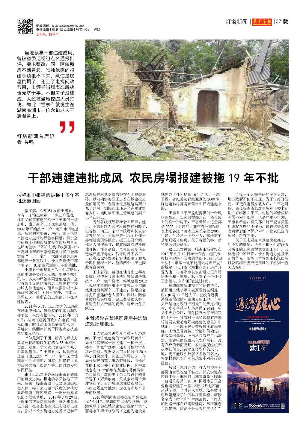 干部违建违批成风 农民房塌报建被拖19年不批