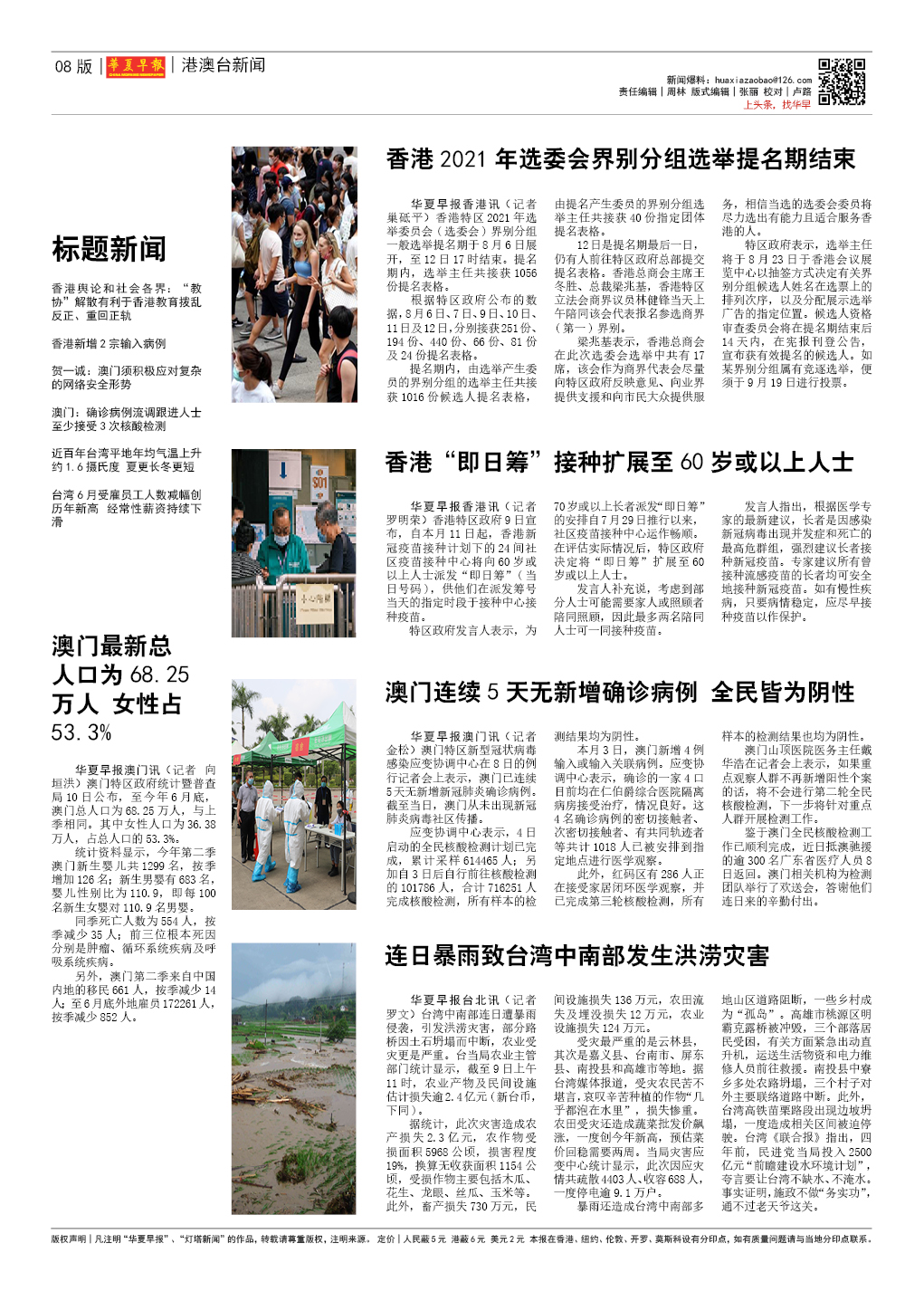 华夏早报数字报 每周五出版 - 总第173期 2021年8月13日出版