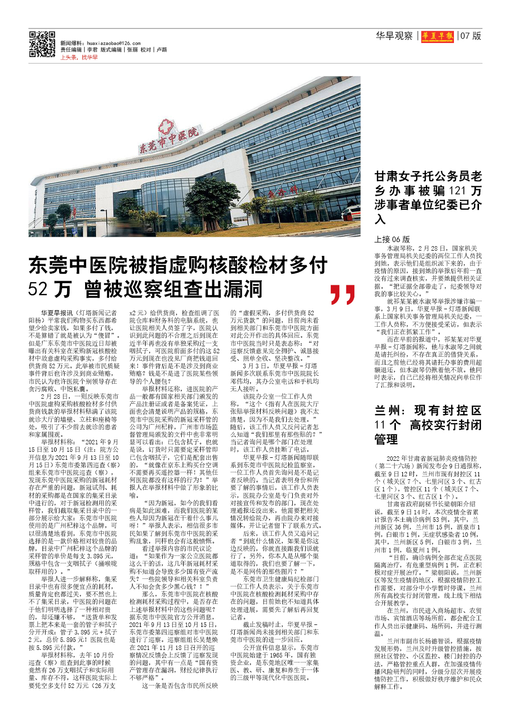东莞中医院被指虚购核酸检材多付52万 曾被巡察组查出漏洞
