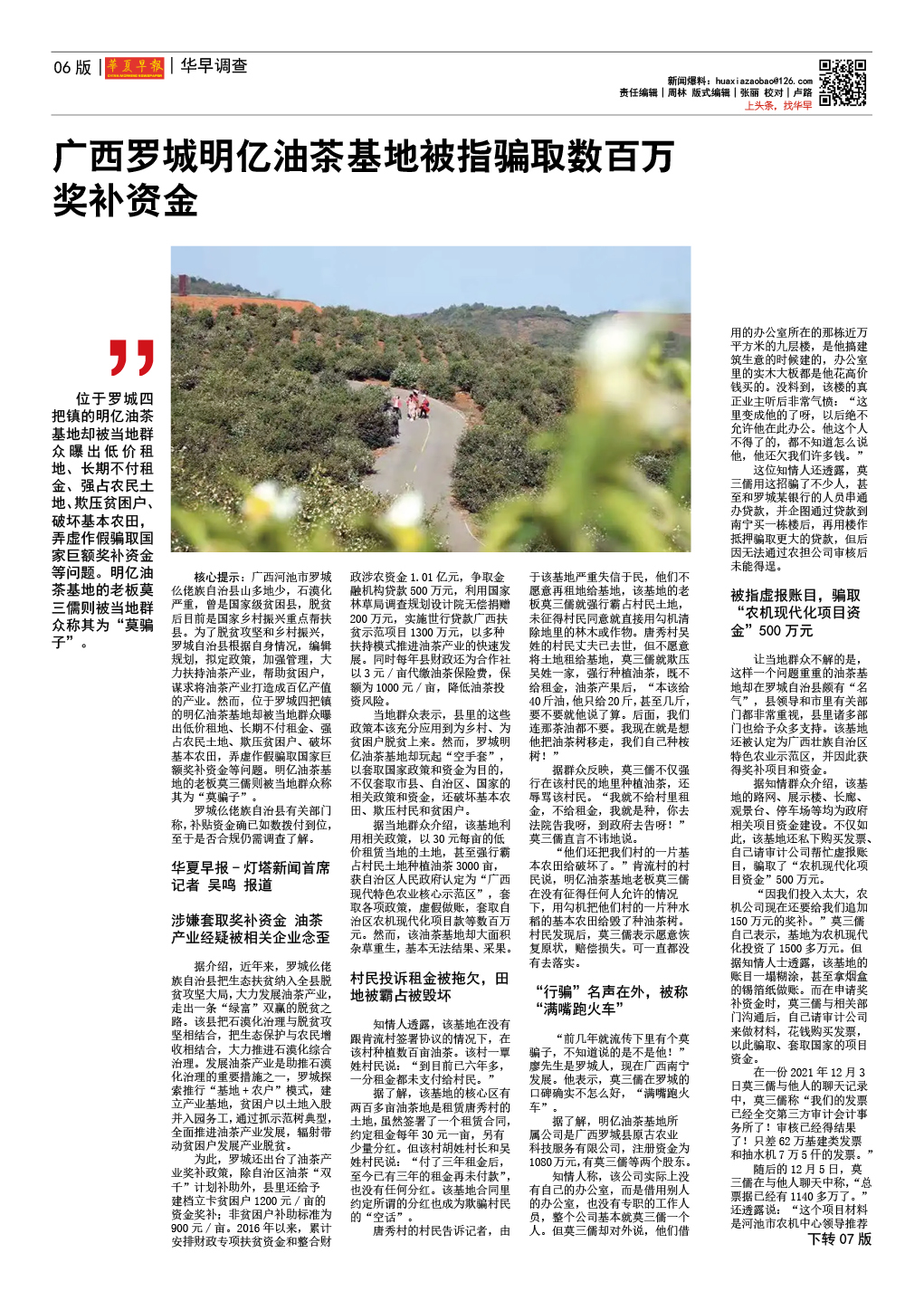 广西罗城明亿油茶基地被指骗取数百万奖补资金