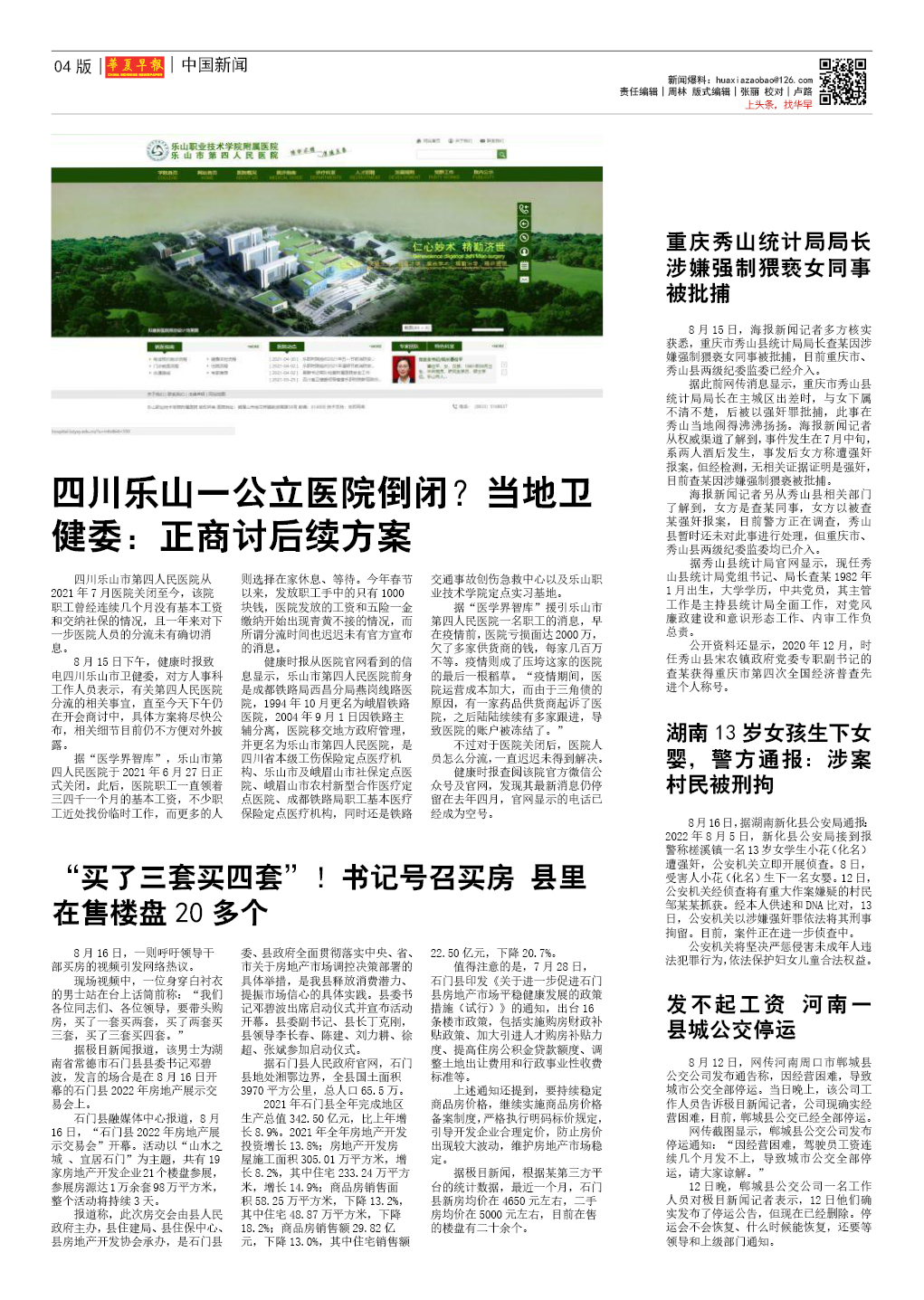 四川乐山一公立医院倒闭?当地卫健委:正商讨后续方案