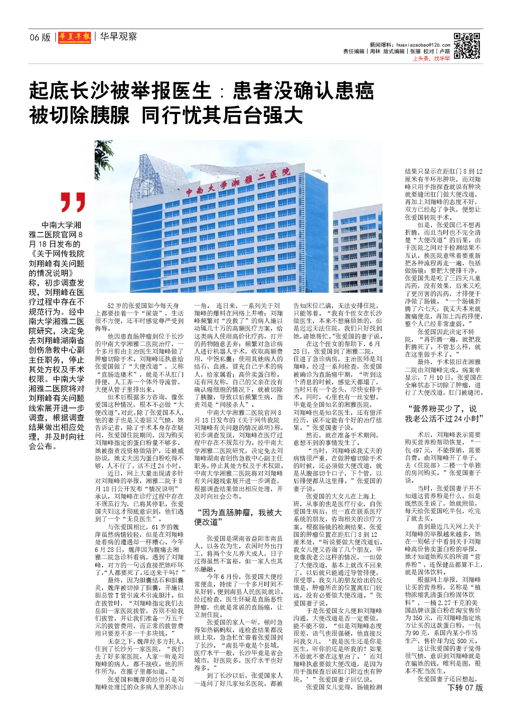 起底长沙被举报医生:患者没确认患癌被切除胰腺 同行忧其后台强大