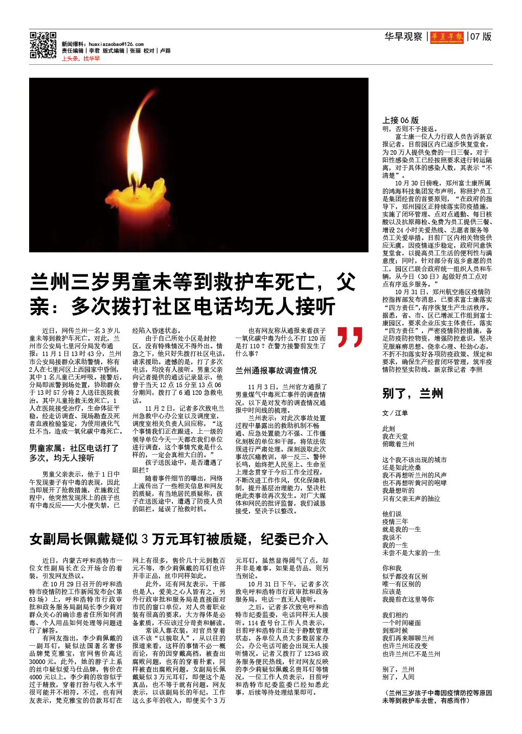 兰州三岁男童未等到救护车死亡,父亲:多次拨打社区电话均无人接听