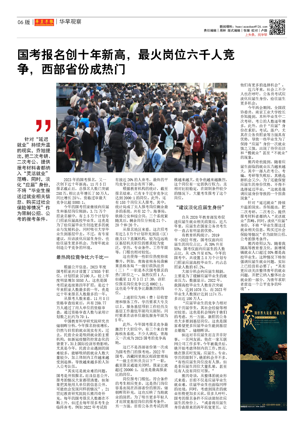 国考报名创十年新高,最火岗位六千人竞争,西部省份成热门