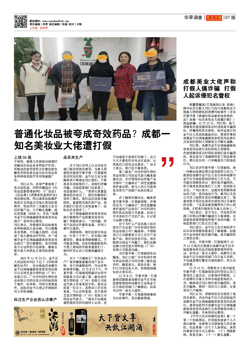 普通化妆品被夸成奇效药品?成都一知名美妆业大佬遭打假