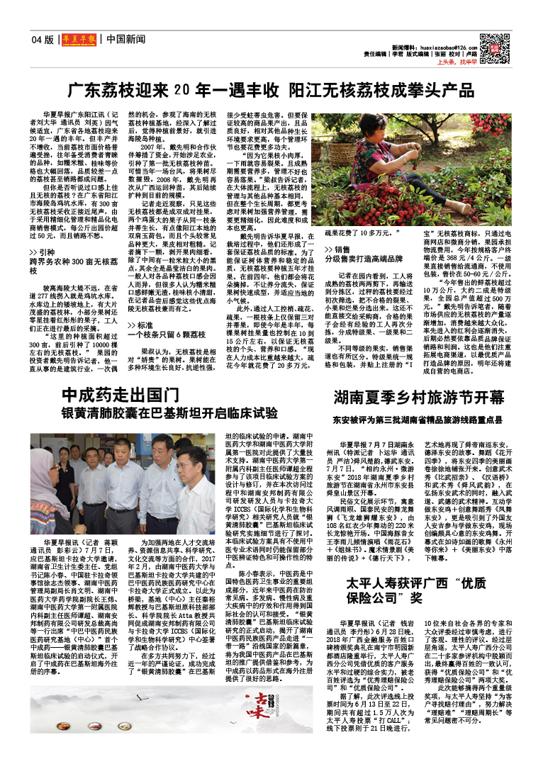 华夏早报数字报 每周五出版 - 总第14期 2018年7月13日出版
