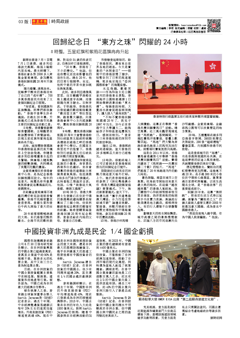 华夏早报数字报 每周五出版 - 总第01期 2017年7月1日出版
