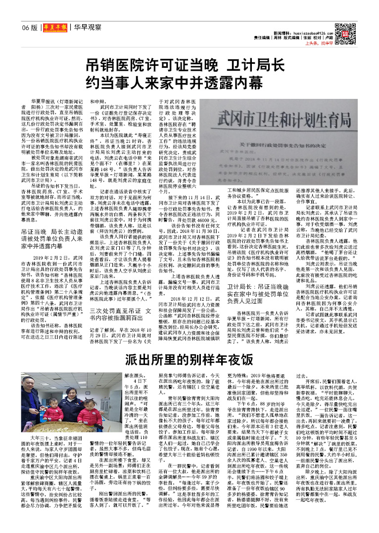 吊销医院许可证当晚 卫计局长约当事人来家中并透露内幕