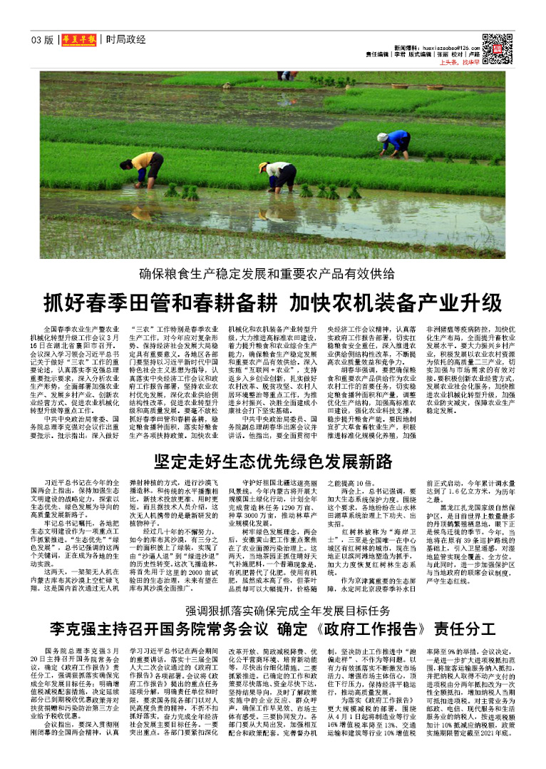 抓好春季田管和春耕备耕 加快农机装备产业升级