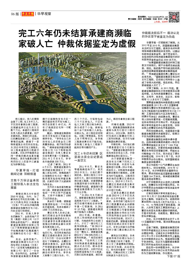 完工六年仍未结算承建商濒临家破人亡 仲裁依据鉴定为虚假
