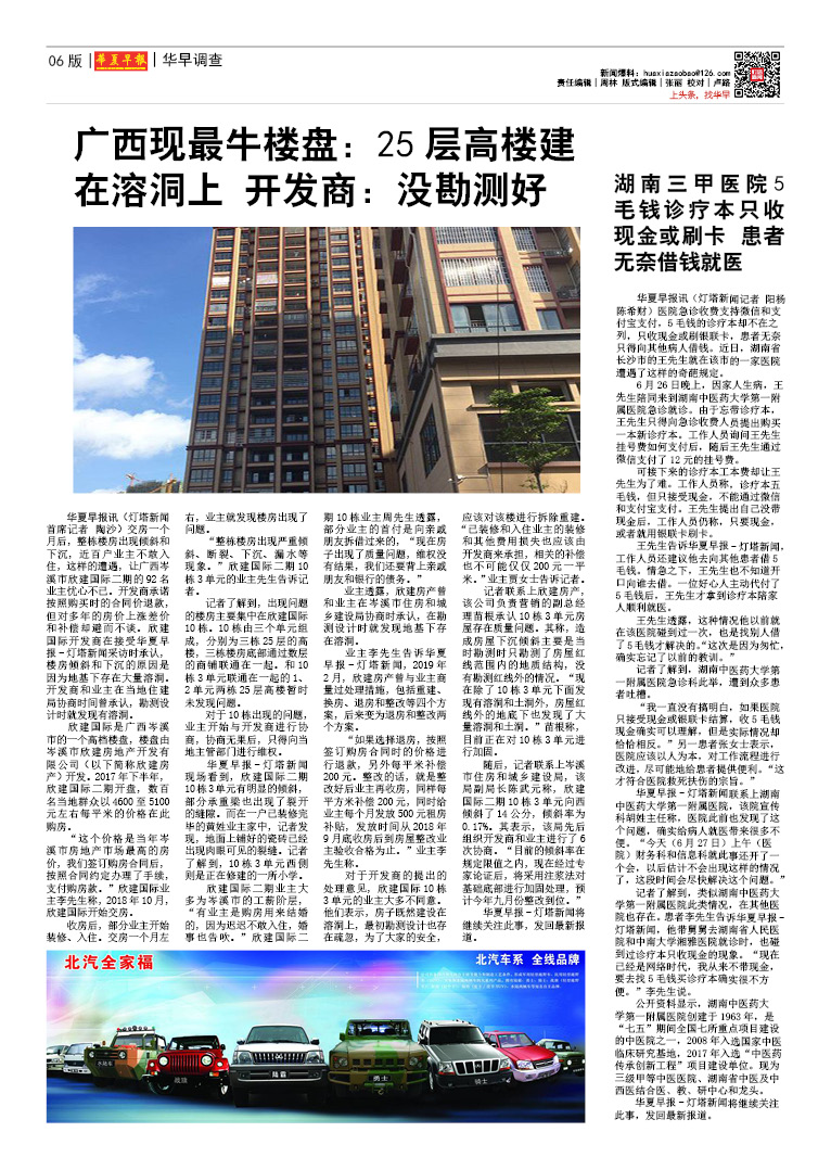 广西现最牛楼盘:25层高楼建在溶洞上 开发商:没勘测好