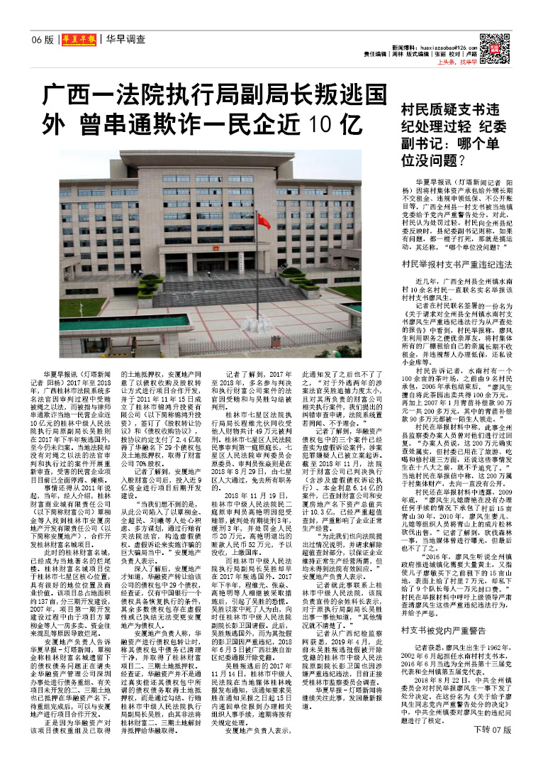 广西一法院执行局副局长叛逃国外 曾串通欺诈一民企近10亿