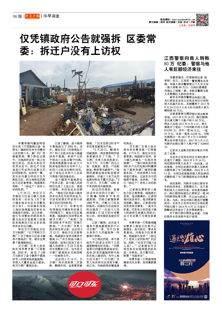 仅凭镇政府公告就强拆 区委常委:拆迁户没有上访权