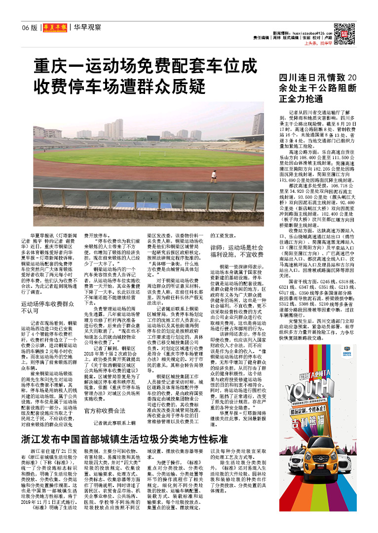 重庆一运动场免费配套车位成收费停车场遭群众质疑
