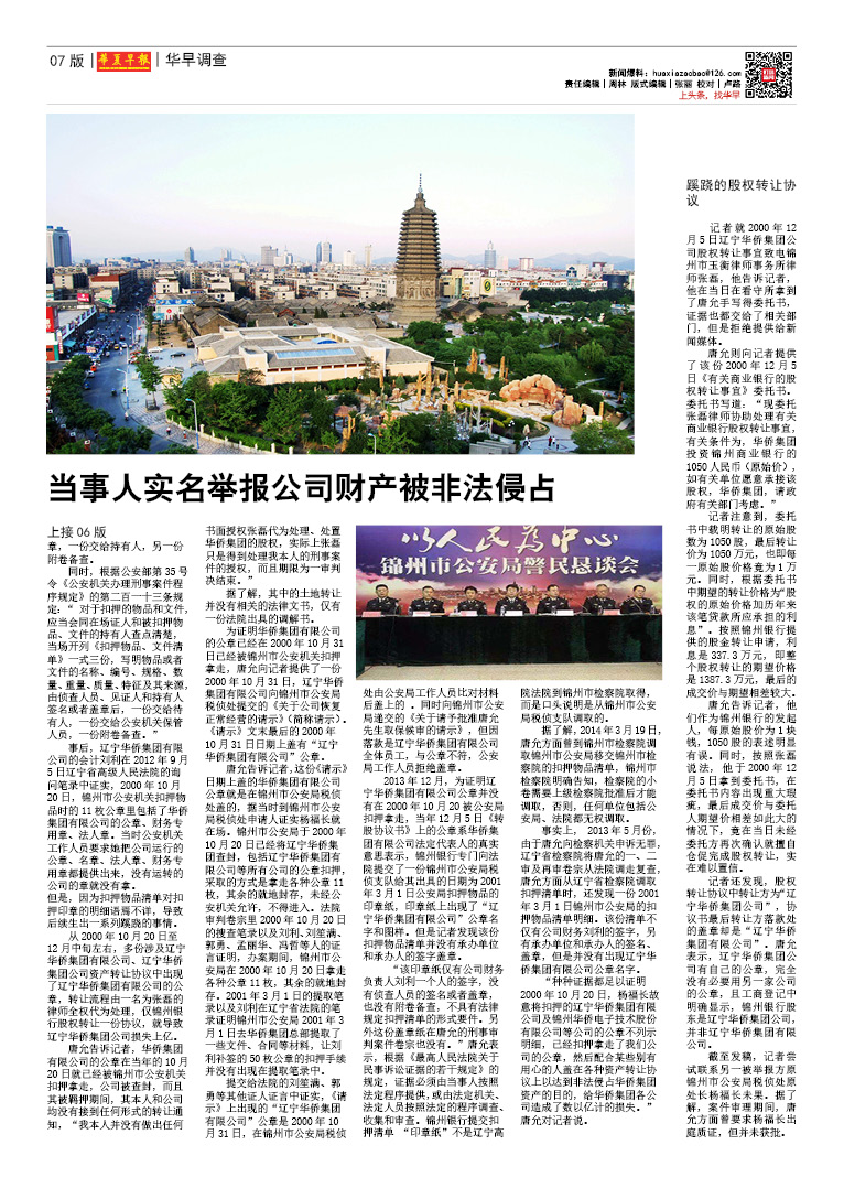 辽宁锦州税案当事人实名举报 公司财产被非法侵占