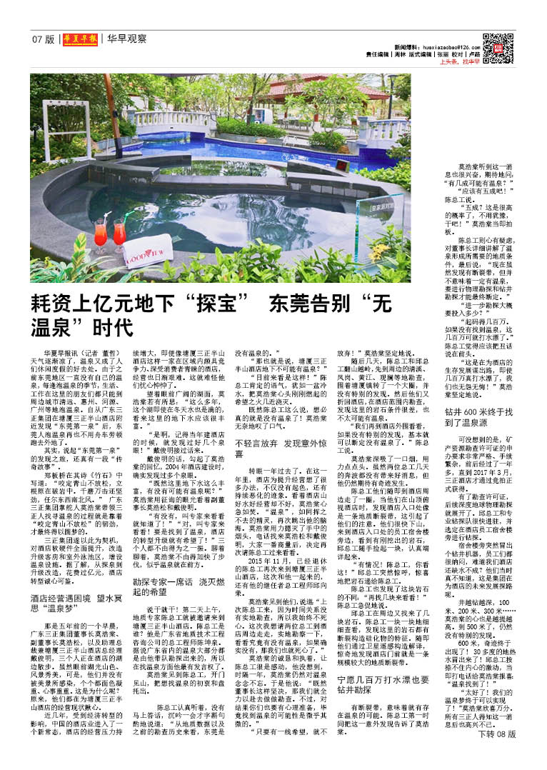 耗资上亿元地下“探宝” 东莞告别“无温泉”时代