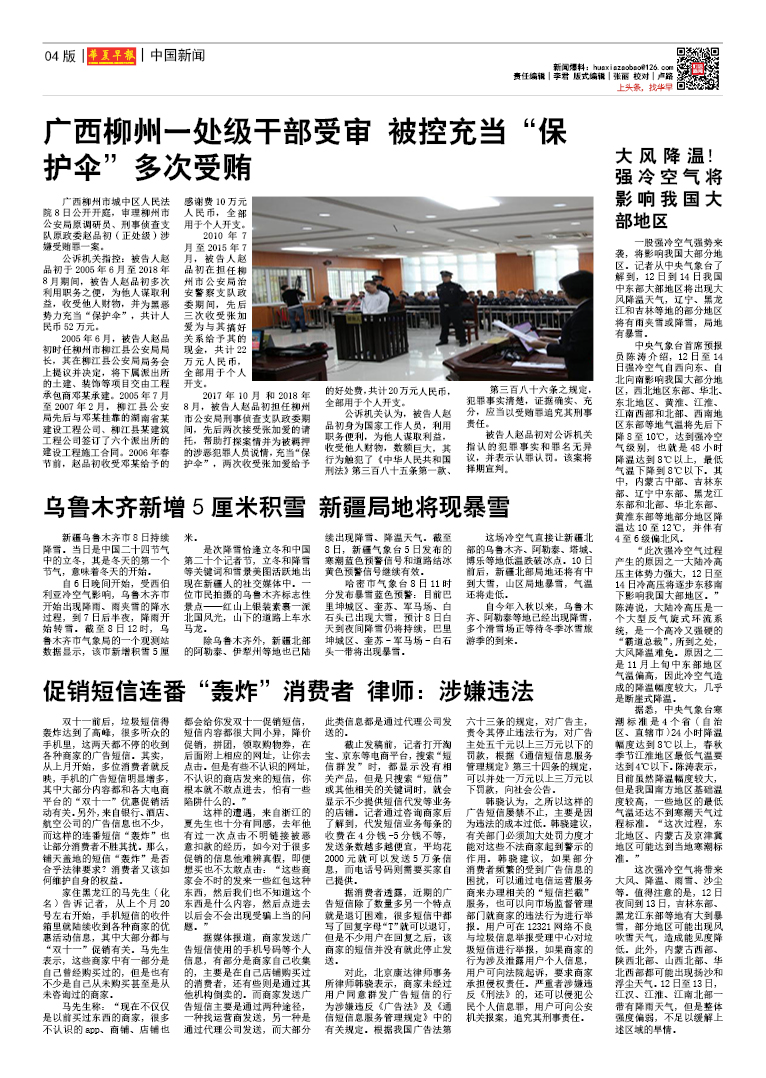 广西柳州一处级干部受审 被控充当“保护伞”多次受贿