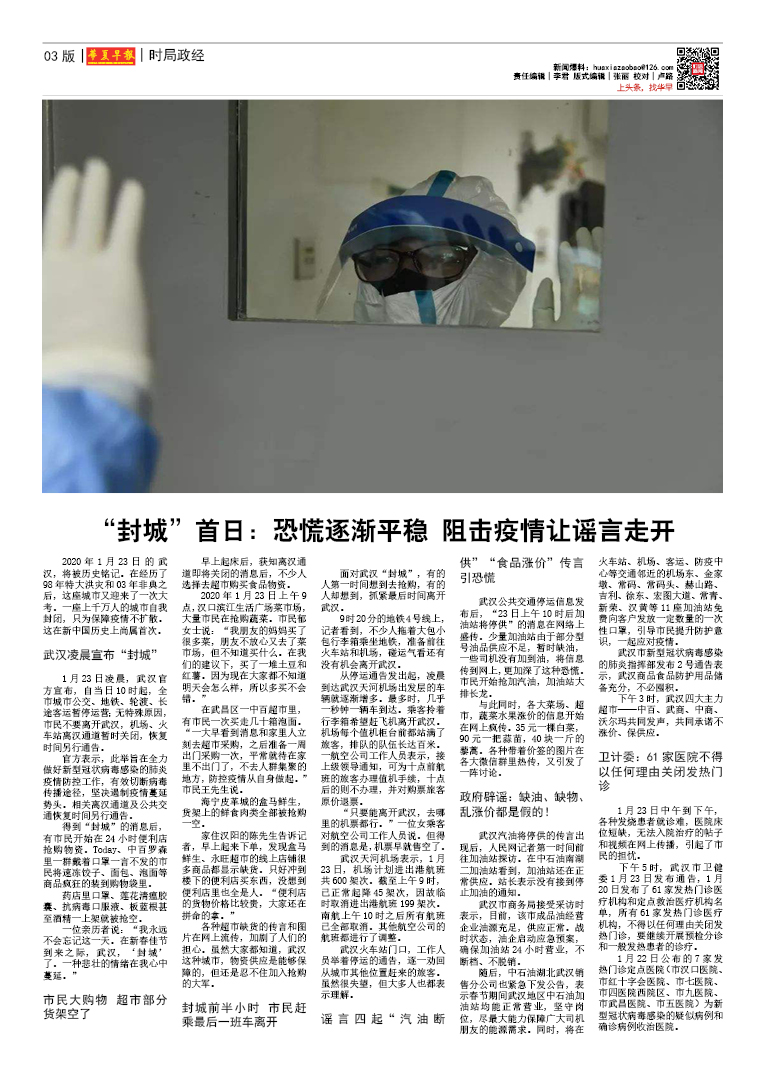 “封城”首日:恐慌逐渐平稳 阻击疫情让谣言走开