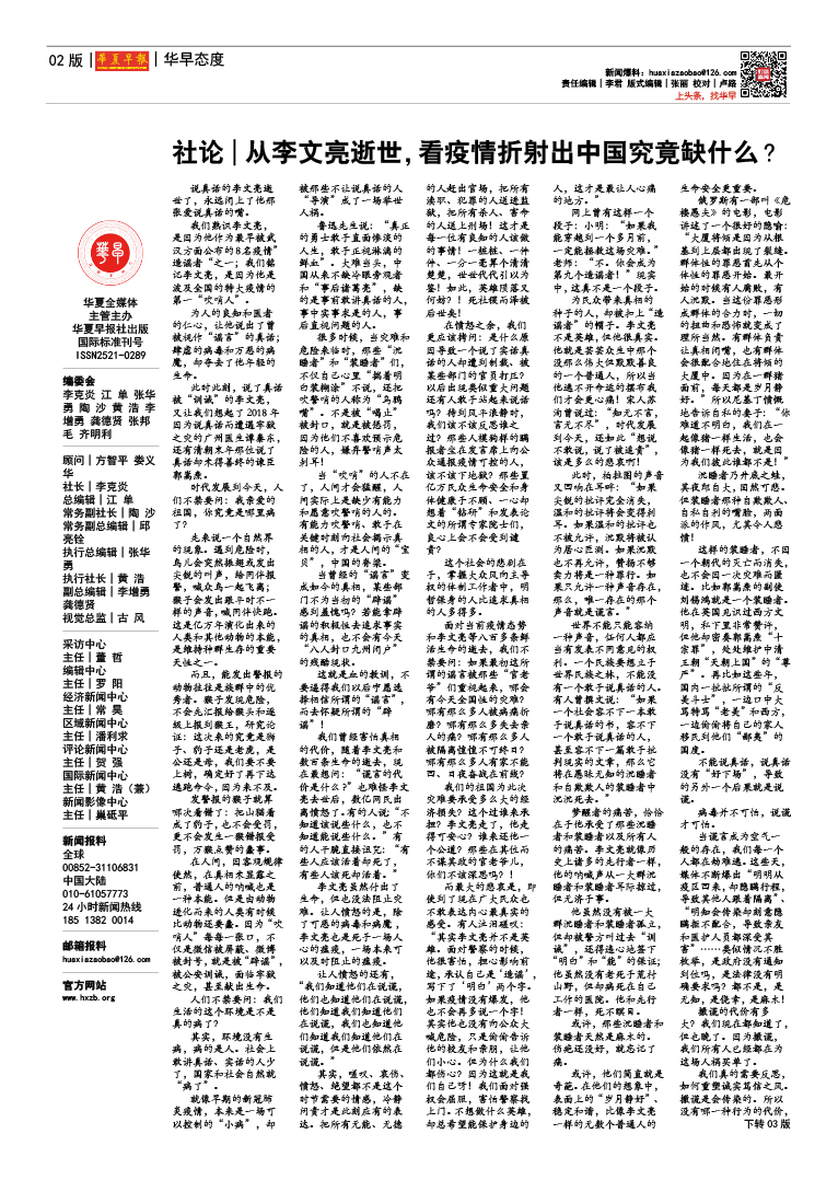 社论|从李文亮逝世,看疫情折射出中国究竟缺什么?