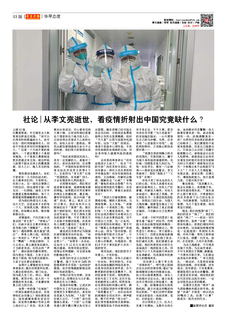 社论|从李文亮逝世,看疫情折射出中国究竟缺什么?