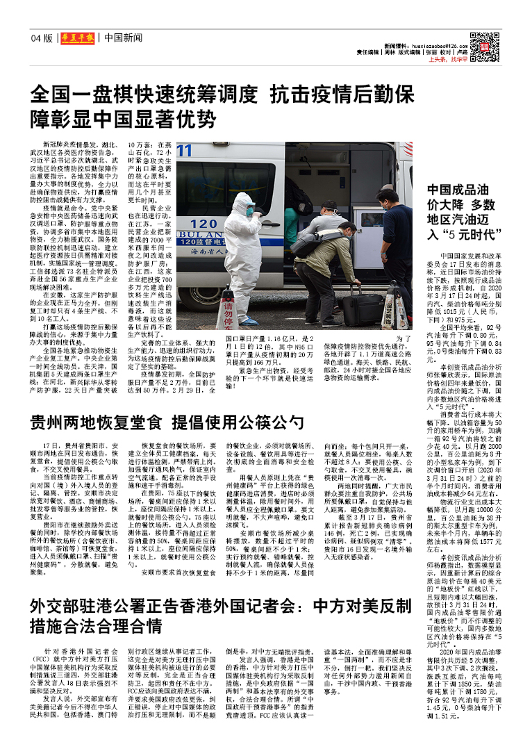 华夏早报数字报 每周五出版 - 总第100期 2020年3月20日出版