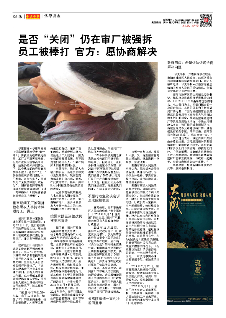 是否“关闭”仍在审厂被强拆员工被棒打 官方:愿协商解决