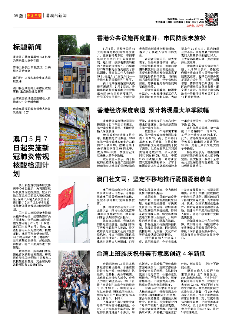 华夏早报数字报 每周五出版 - 总第107期 2020年5月8日出版