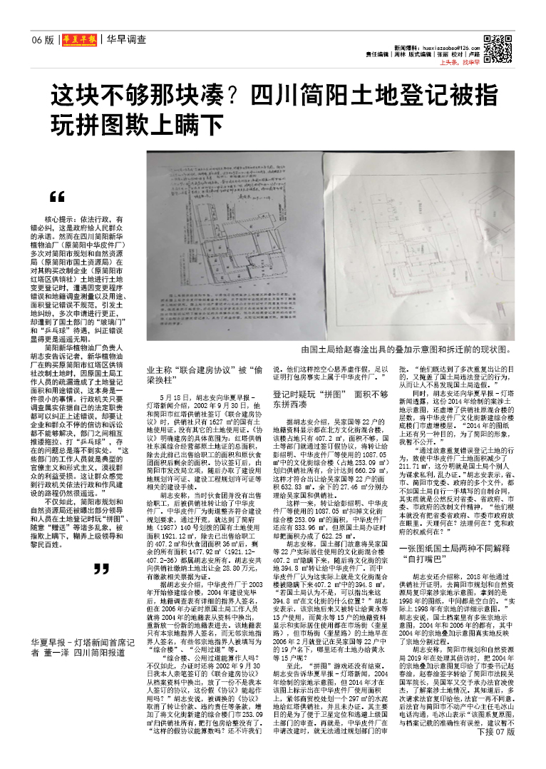 这块不够那块凑?四川简阳土地登记被指玩拼图欺上瞒下