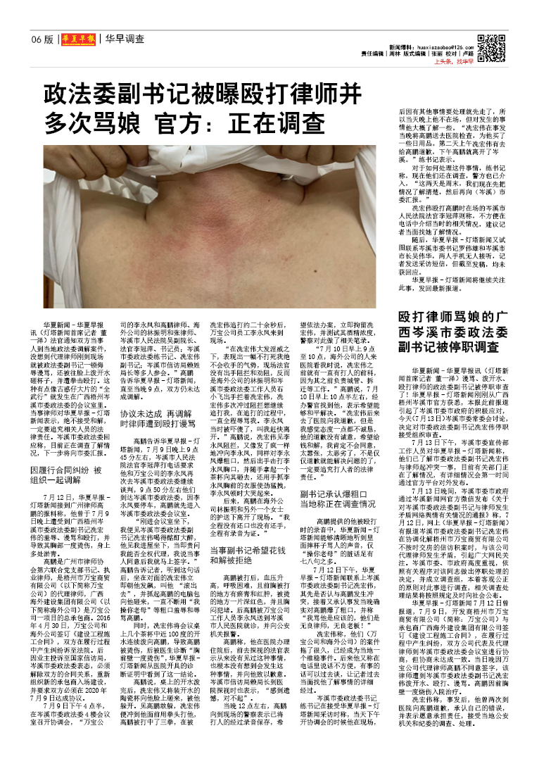 政法委副书记被曝殴打律师并多次骂娘 官方:正在调查