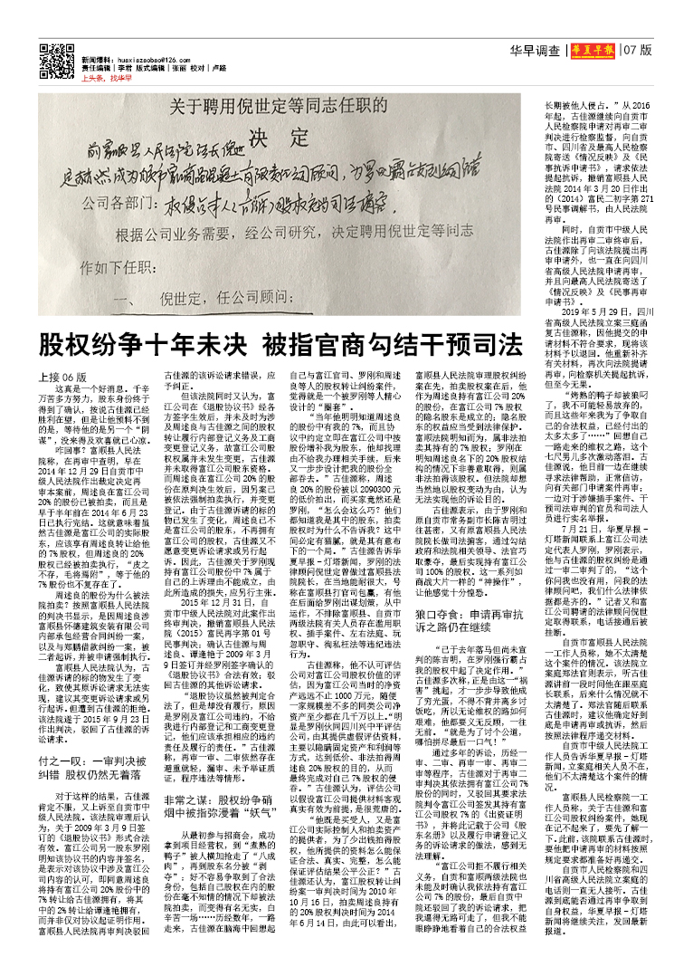 股权纷争十年未决 被指官商勾结干预司法公正