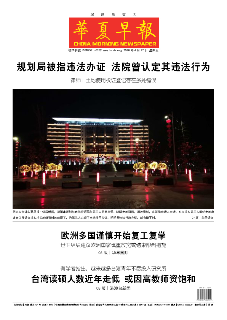 华夏早报数字报 每周五出版 - 总第104期 2020年4月17日出版