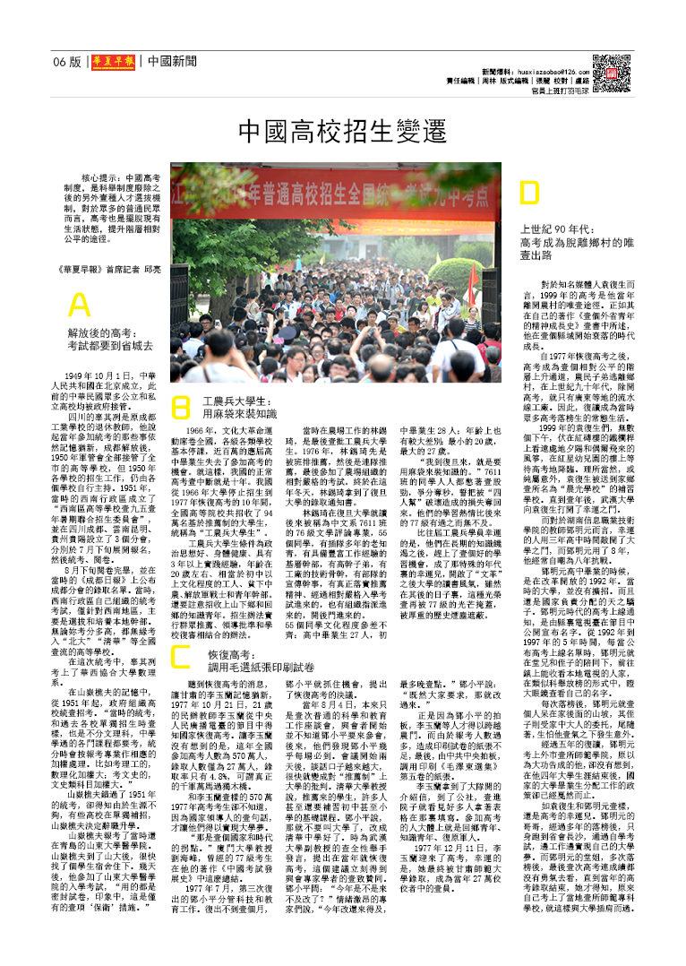 核心提示:中国高考制度,是科举制度废除之后的另外一种人才选拔机制,对于众多的普通民众而言,高考也是摆脱现有生活状态,提升阶层相对公平的途径。