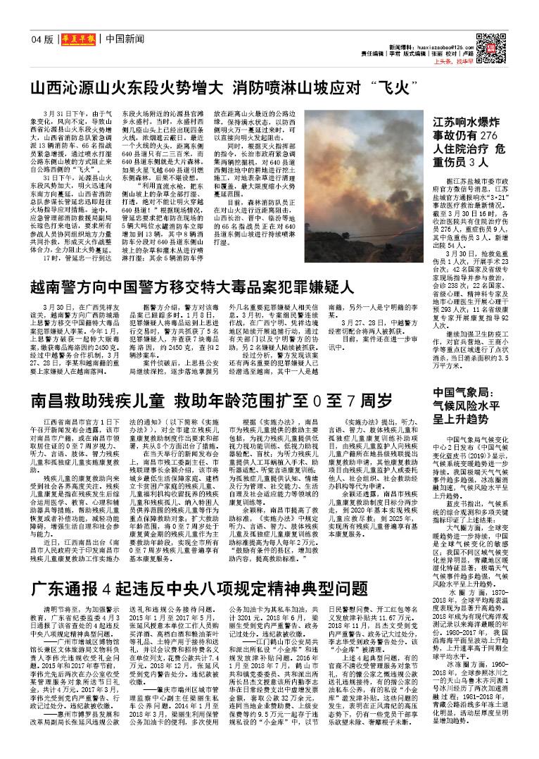 中国气象局气候变化中心2日发布《中国气候变化蓝皮书(2019)》显示,气候系统变暖趋势进一步持续。我国极端天气气候事件趋多趋强,冰冻圈消融加速,气候风险水平呈上升趋势。